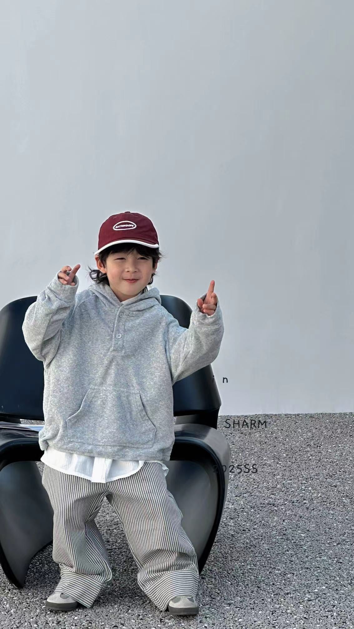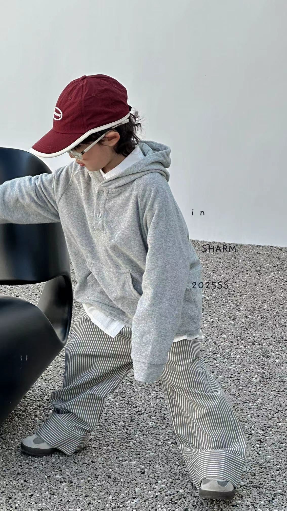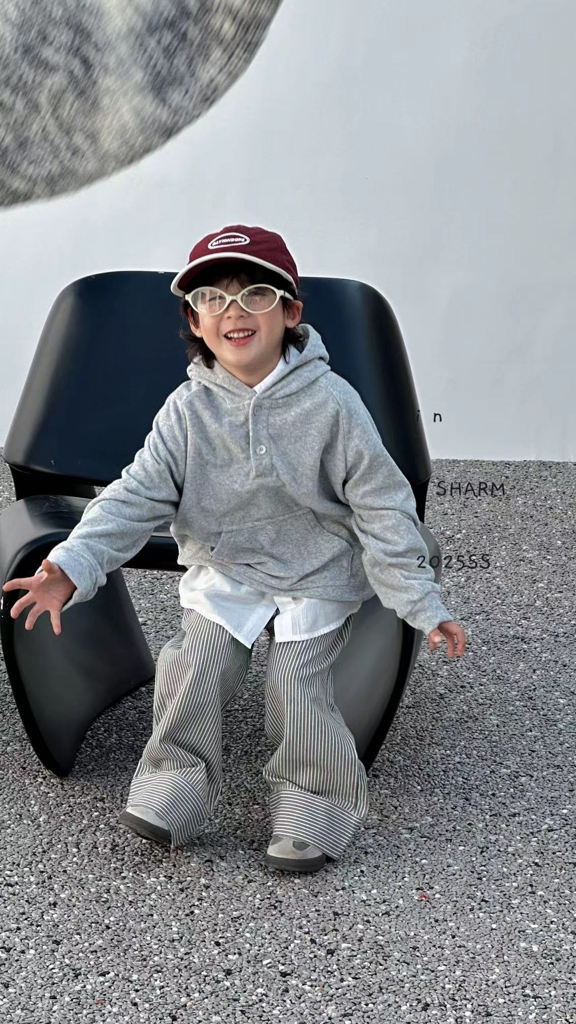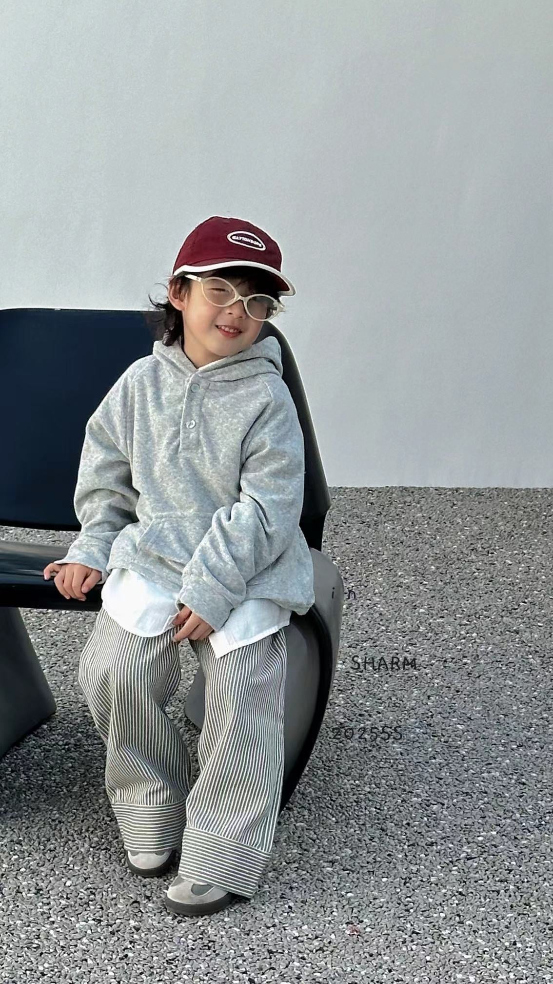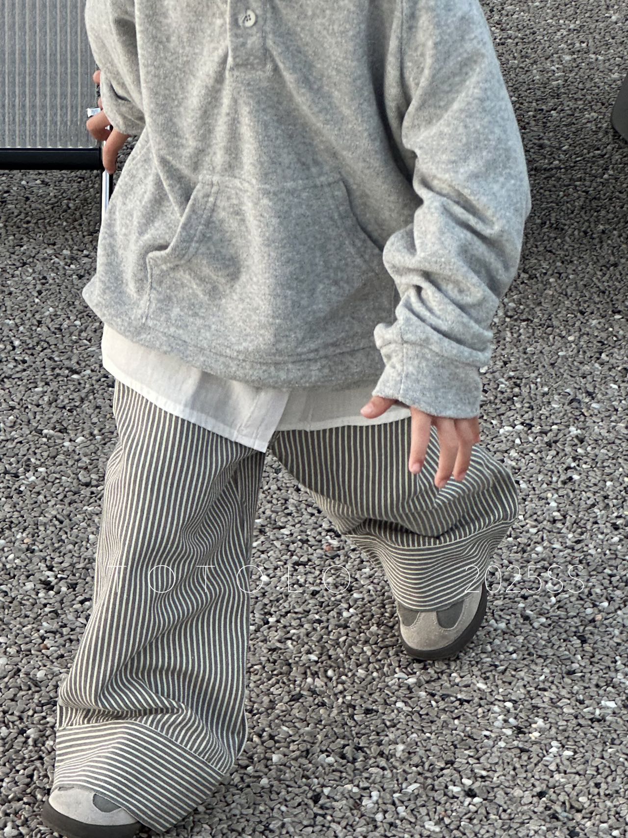 褲子 款號:52227 純棉豎條紋直筒褲 淺灰色